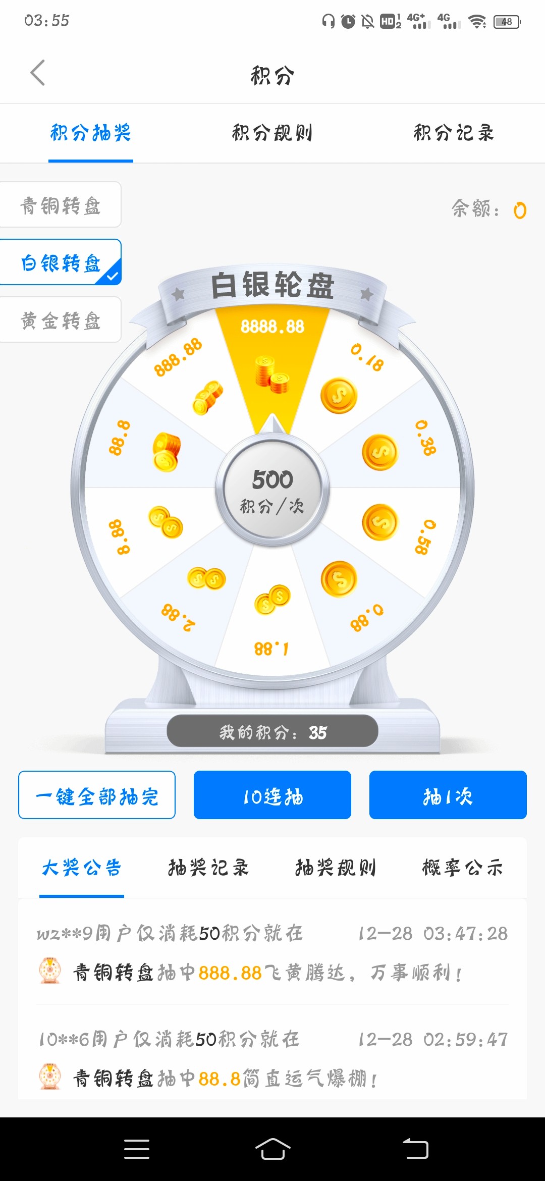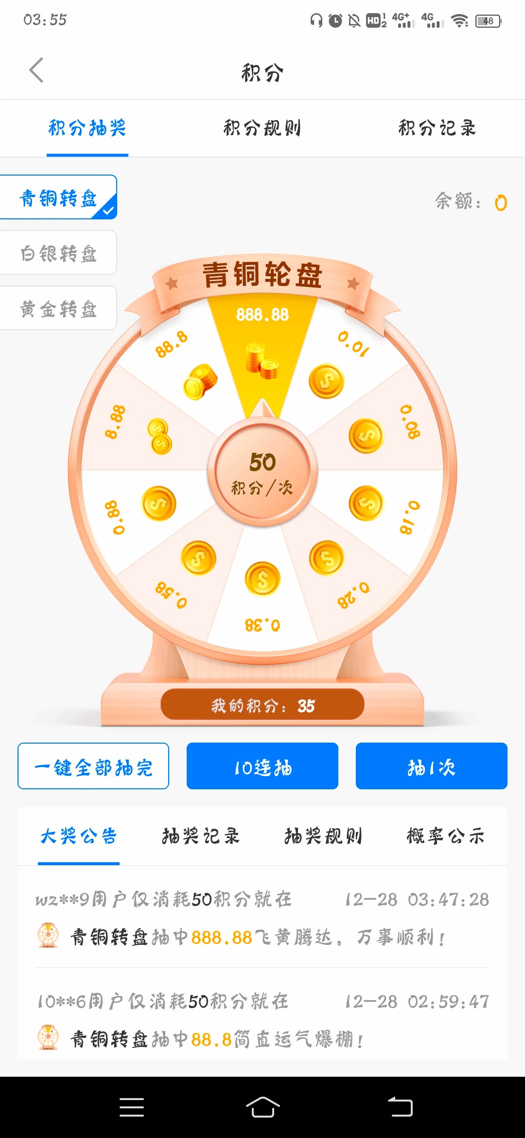 NO钱包,注册实名,每天登陆送积分抽奖。抽到找一个台子充了干。