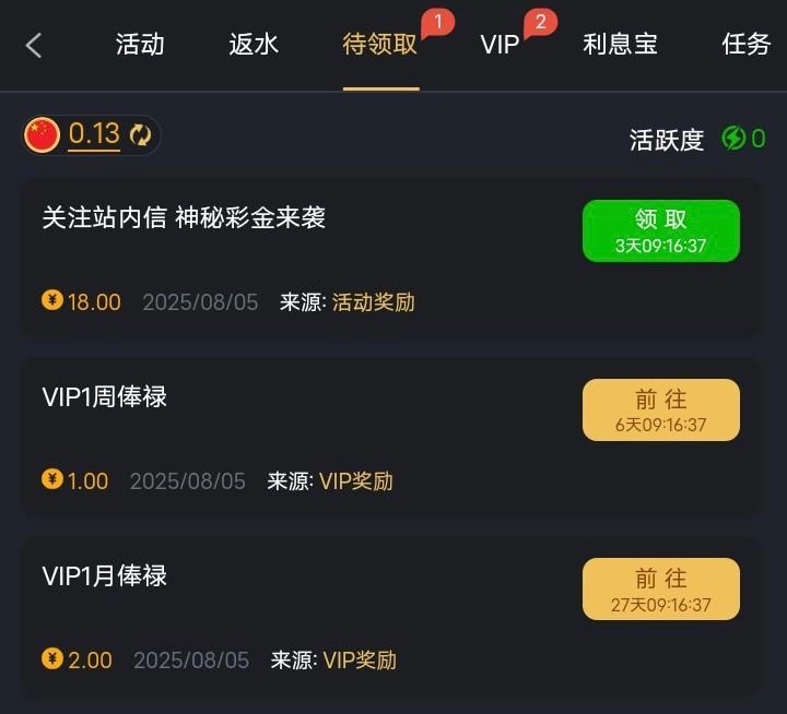 有充值过的兄弟登入看看站内信有没有